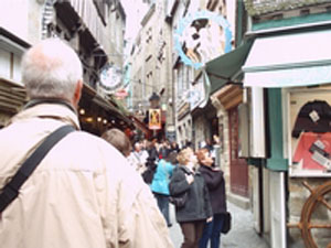 Auf dem Stellplatz angekommen, bekamen wir von einem Franzosen die Auskunft, das wir hier erst ab dem 1.4. bezahlen müssten, also erst mal entspannen. Aber auch hier war noch kein Strom zu bekommen, naja die Bordbatterie war ja frisch aufgeladen und somit hatten wir auch kein Problem. Wir gingen dann ins Städtchen, eine sehr schöne alte Hafenstadt, sehr schön anzusehen. Während unseres Spazierganges kamen wir zur alten Holzkirche Sainte Catherine, die wir uns auch von innen ansahen. Eine wirklich beeindruckende Bauweise, die es nur hier in Frankreich gibt. Am nächsten morgen machten wir uns auf den Weg zum Cap Frehel. Auf dem Weg legten wir eine Pause in Le Mont Saint Michel. Auf dem Parkplatz mußten wir das erstemal bezahlen,10€, aber dafür waren wir vom Inneren des Klosters sehr angetan und es hat sich wirklich gelohnt hier eine Rast einzulegen.