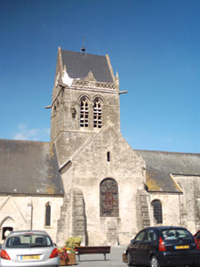 Ebenso in St. Mere Eglise, wo man an der Kirche, noch immer eine Puppe (anstelle des Soldaten) sehen kann, die an die Landung der Fallschirmjäger in dieser Gegend erinnern soll. Der arme Kerl hatte es wirklich nicht so einfach bis zur Befreiung durch seine Kameraden.(lt. eines Berichtes im Museum).